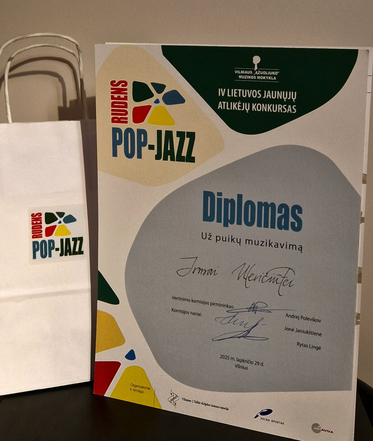 Paskutinį šių metų rudens šeštadienį, 2025 m. lapkričio 29 d., Vilniaus Juozo Tallat-Kelpšos konservatorijos koncertų salėje vyko jau tradicija tapęs, ketvirtasis respublikinis jaunųjų atlikėjų konkursas „Rudens Pop–Jazz 2025“. Renginį organizavo Vilniaus „Ąžuoliuko“ muzikos mokykla kartu su partneriais – Vilniaus Juozo Tallat-Kelpšos konservatorija. Jaunieji džiazo muzikos talentai iš įvairių Lietuvos muzikos ir meno mokyklų skambino puikiu „Stenway & Sons“ firmos instrumentu. Savo amžiaus kategorijose varžėsi solistai ir ansambliai, atlikę laisvai pasirinktus džiazo ir populiariosios muzikos kūrinius. Pirmą kartą šiame konkurse dalyvavo Alytaus r. meno ir sporto mokyklos jaunoji pianistė Irma Ulevičiūtė (mok. Arvydas Kirda), ji pelnė konkurso „Rudens Pop–Jazz 2025“ diplomą. Sveikiname !