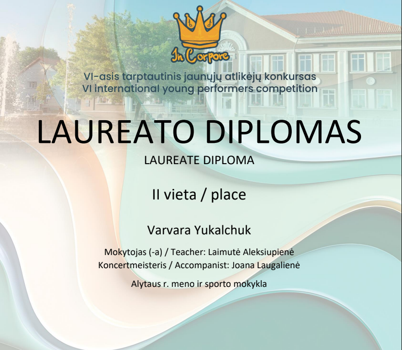 Alytaus r. meno ir sporto mokyklos mokiniai su savo mokytojais dalyvavo tarptautiniame nuotoliniame jaunųjų atlikėjų konkurse „In Corpore“ ir pelnė laureato diplomus!