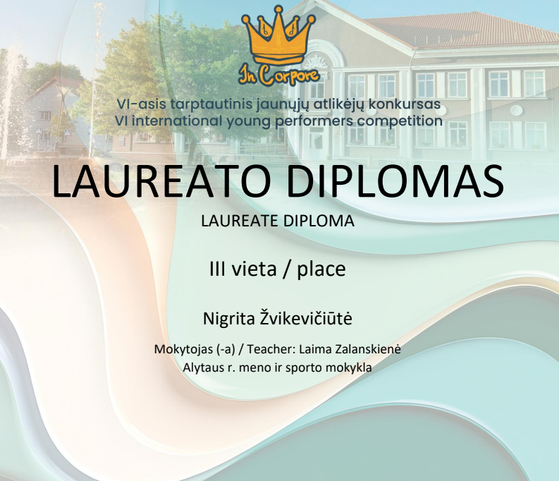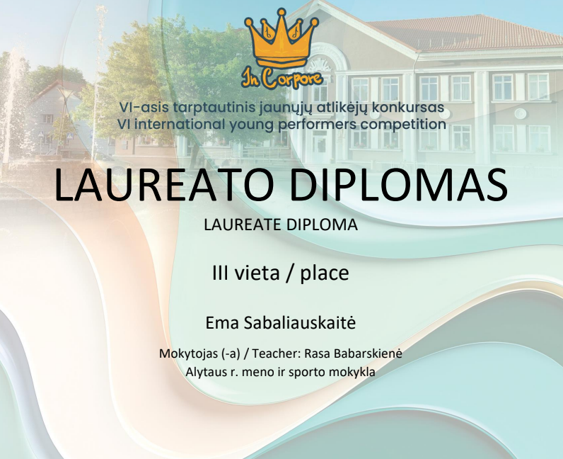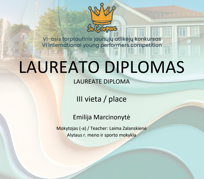 Alytaus r. meno ir sporto mokyklos mokiniai su savo mokytojais dalyvavo tarptautiniame nuotoliniame jaunųjų atlikėjų konkurse „In Corpore“ ir pelnė laureato diplomus!