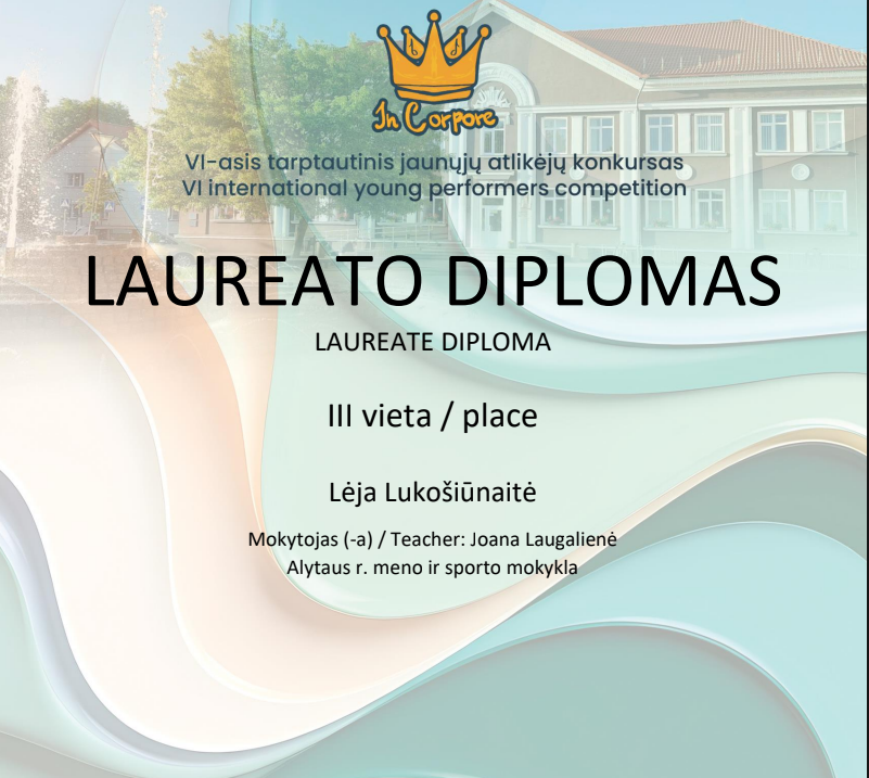 SVEIKINAME TARPTAUTINIO KONKURSO LAUREATUS!