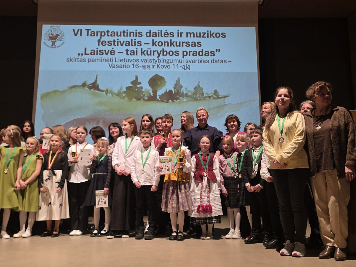 2026 m. balandžio 24 d. Kernavės archeologinės vietovės muziejuje vyko VI tarptautinio dailės ir muzikos festivalio-konkurso „Laisvė - tai kūrybos pradas“, skirto paminėti Lietuvos valstybingumui svarbias datas – Vasario 16-ąją ir Kovo 11-ąją, laureatų apdovanojimo ceremonija ir koncertas. Šioje iškilmingoje šventėje, kuri vyko Kernavės archeologinės vietovės muziejuje, dalyvavo Alytaus r. meno ir sporto mokyklos mokinės kartu su mokytojomis Margarita Ivanauskiene ir Joana Laugaliene. Renginio metu mokinės atliko savo kūrinius, kurie konkurso komisijos buvo puikiai įvertinti. Laisvės idėja čia skambėjo per muziką ir atsiskleidė dailės darbuose, sujungdama skirtingas meno formas į vieningą kūrybos šventę. Nuoširdžiai sveikiname puikiai pasirodžiusias I vietos laureates – Emiliją Janulynaitę, Auksę Svilainytę ir dailės skyriaus mokinę Lėją Šerpytytę! Apdovanojimų ceremonijoje jos apdovanotos medaliais, o jas parengusios mokytojos – Margarita Ivanauskienė ir Joana Laugalienė – atminimo dovanėlėmis. Džiaugiamės šiuo aukštu įvertinimu ir linkime, kad kūrybinis kelias būtų kupinas įkvėpimo, drąsių idėjų ir dar ne vieno prasmingo laimėjimo!