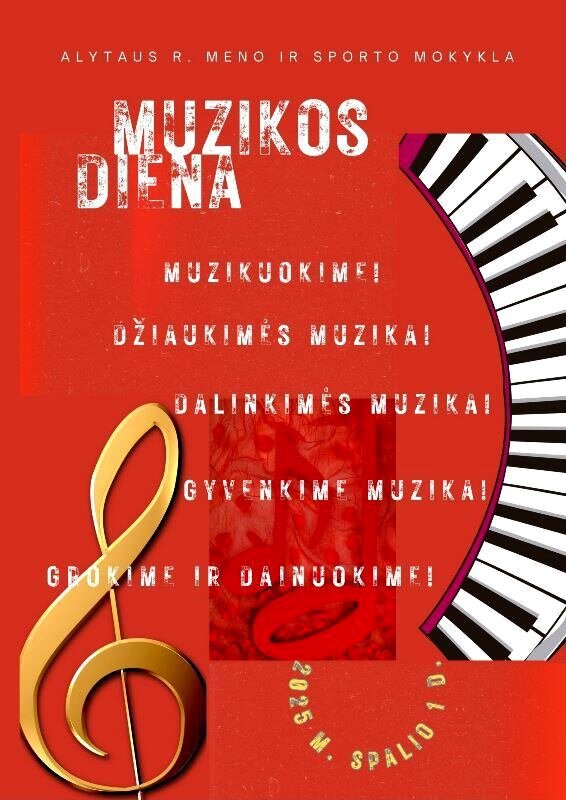 Spalio 1-osios diena skirta paminėti muzikos svarbą, jos įvairovę ir skleisti muzikos kultūrą visame pasaulyje. Alytaus r. meno ir sporto mokykloje mokiniai šią dieną muzikavo, ritmavo, savo gebėjimus pademonstravo jaunučių choriukas. Visa mokykla buvo kupina šventinės nuotaikos. Muzika sujungė mokinius ir mokytojus į vieną bendrą ratą, primindama, kad ji netik gydo, bet džiugina ir daro mūsų dienas gražesnes. Mokyklos direktorė Auksė Sapežinskienė pasidžiaugė jaunųjų atlikėjų sėkme, kad kiekvienas atsakingai bei kūrybiškai pasinėrė į muzikos garsų pasaulį.