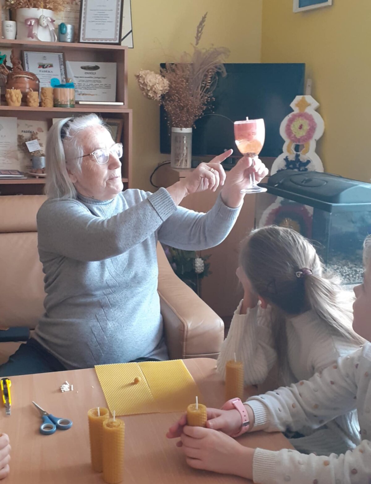 2025 m. lapkričio 4 d., mokinių rudens atostogų metu, vyko tęstinis edukacinis renginys, skirtas Vėlinių laikotarpiui. Mokiniai dalyvavo žvakučių gamybos edukacijoje, kuri vyko Lietuvos sutrikusio intelekto žmonių globos bendrijos „Viltis“ Alytaus rajono padalinio patalpose (Dauguose). Edukaciją vedė padalinio tarybos pirmininkė Danutė Laukaitienė.Renginio pradžioje mokiniai buvo supažindinti su bičių gyvenimu, vaško gaminimo procesu bei bitučių kruopštumu ir darbštumu renkant medų. Vedančioji papasakojo apie vaško gaminius ir žvakių simbolinę reikšmę – jų naudojimą anksčiau ir šiandien, kaip šviesos, ramybės bei atminimo ženklą. Praktinės veiklos metu mokiniai gamino žvakutes iš vaško, mokėsi kruopštumo, susikaupimo ir atsakingo darbo, kad jų gaminiai būtų dailūs ir simetriški. Užsiėmimas suteikė ne tik žinių, bet ir pasitenkinimo savo kūrybos rezultatais. Didelį įspūdį paliko relaksacinis smėlio stalas, prie kurio mokiniai galėjo kurti įvairias figūras, lavinti vaizduotę ir patirti kūrybinį atsipalaidavimą. Renginio pabaigoje dalyviai vyko į muzikinį kiemelį, kur turėjo galimybę išbandyti įvairius muzikos instrumentus ir pasinerti į garsų bei ritmų pasaulį. Renginys suteikė daug teigiamų emocijų, skatino kūrybiškumą, pažinimą bei pagarbą tradicijoms, siejant jas su Vėlinių prasme ir šviesos simbolika.