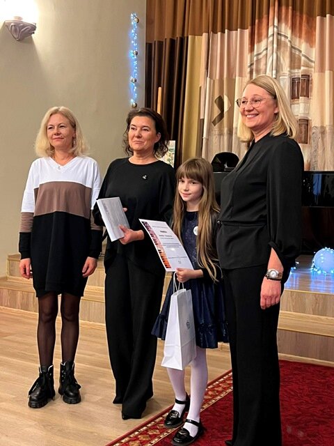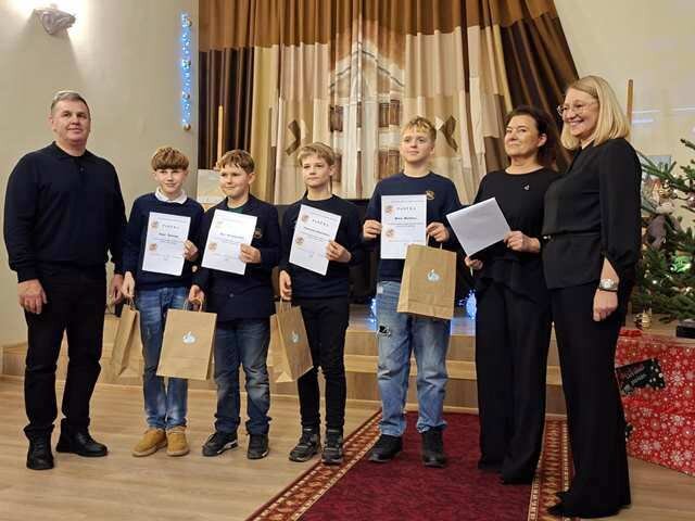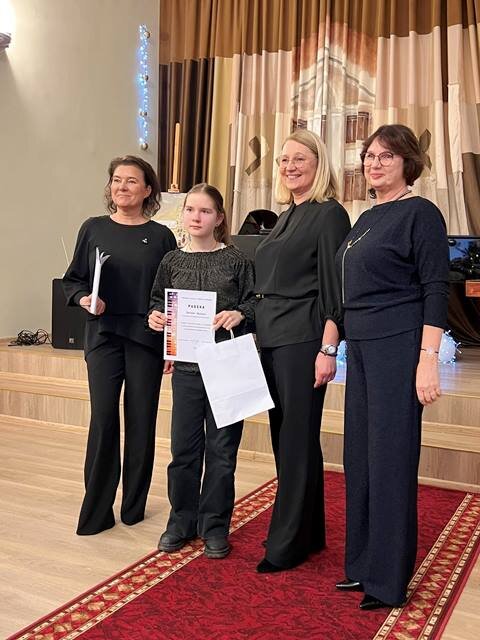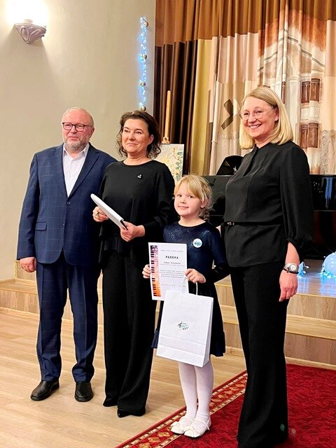 Mokyklos direktorės Auksės Sapežinskienės padėkomis įvertinti mokiniai, kurie 2024-2025 mokslo metų eigoje sėkmingiausiai dalyvavo konkursuose ir pasiekė aukštus rezultatus. Brigita Švedkauskaitė, mokytoja Laima Zalanskienė, fortepijono klasė; Varvara Yukalchuk, mokytoja Laimutė Aleksiupienė, kanklių klasė; Dovilė Molytė, mokytoja Rasa Babarskienė, fortepijono klasė; Kipras Miesčionaitis, mokytojas Dainius Platūkis, saksofono klasė; Auksė Svilainytė, mokytojas Algirdas Glovickis, smuiko klasė; Emelia Tichonova, mokytoja Raminta Vanagaitė, fortepijono klasė; Greta Jakimavičiūtė, mokytoja Margarita Ivanauskienė, kanklių klasė; Alisa Svilainytė, mokytoja Joana Laugalienė, fortepijono klasė; Dovydas Kurkutis, mokytoja Aistė Noreikaitė, gitaros klasė; Irma Ulevičiūtė, mokytojas Arvydas Kirda, fortepijono klasė; Linas Stasionis, mokytojas Arūnas Vaitkus, dailės skyrius; Vakaris Sukackas, Rasa Ribačiauskaitė, Augustė Sukarevičiūtė, mokytojas Rimas Sukackas, irklavimas; Ajus Armanavičius, Matas Mortūnas, Nojus Šemiotas, Vidmantas Kaminskas, mokytojas Rolandas Lukoševičius, dziudo; Ignas Kamandulis, mokytojas Martynas Biržinis, futbolas.