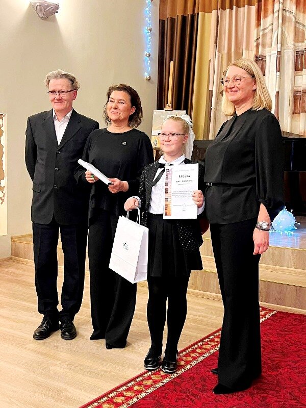 Sintija Palubinskaitė, dailės ugdymo programos mokinė – už aktyvų dalyvavimą dailės konkursuose, reikšmingus kūrybinius pasiekimus ir atsakingumą.