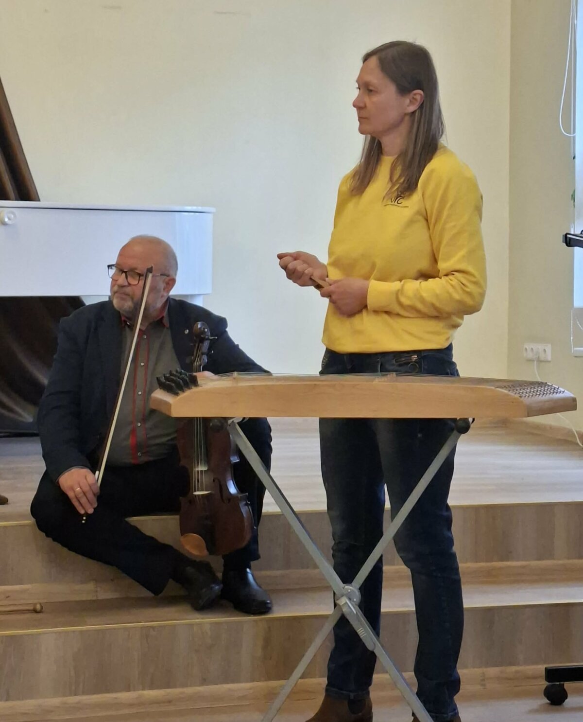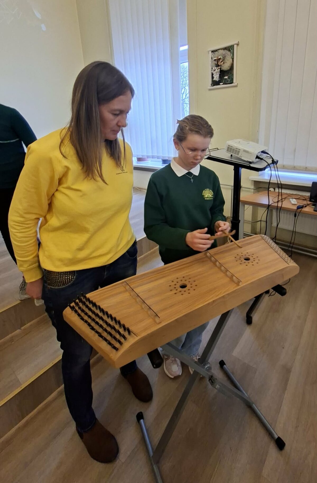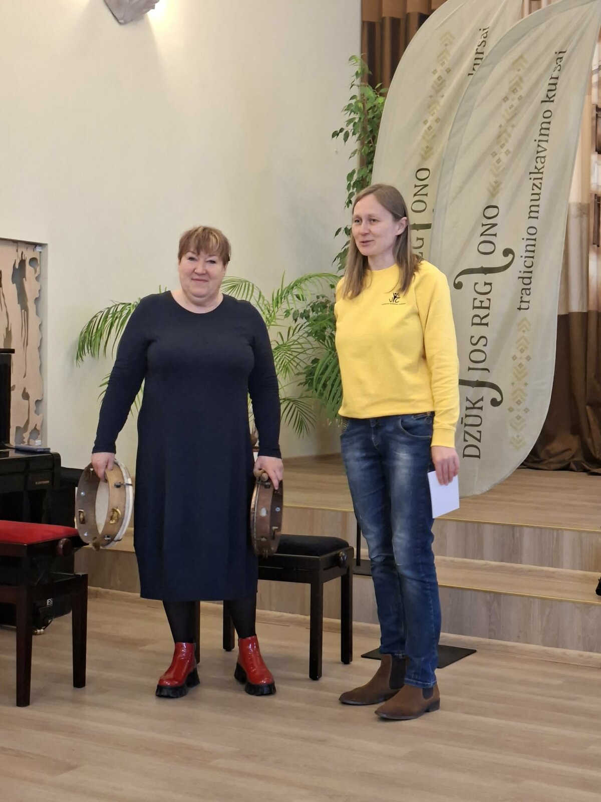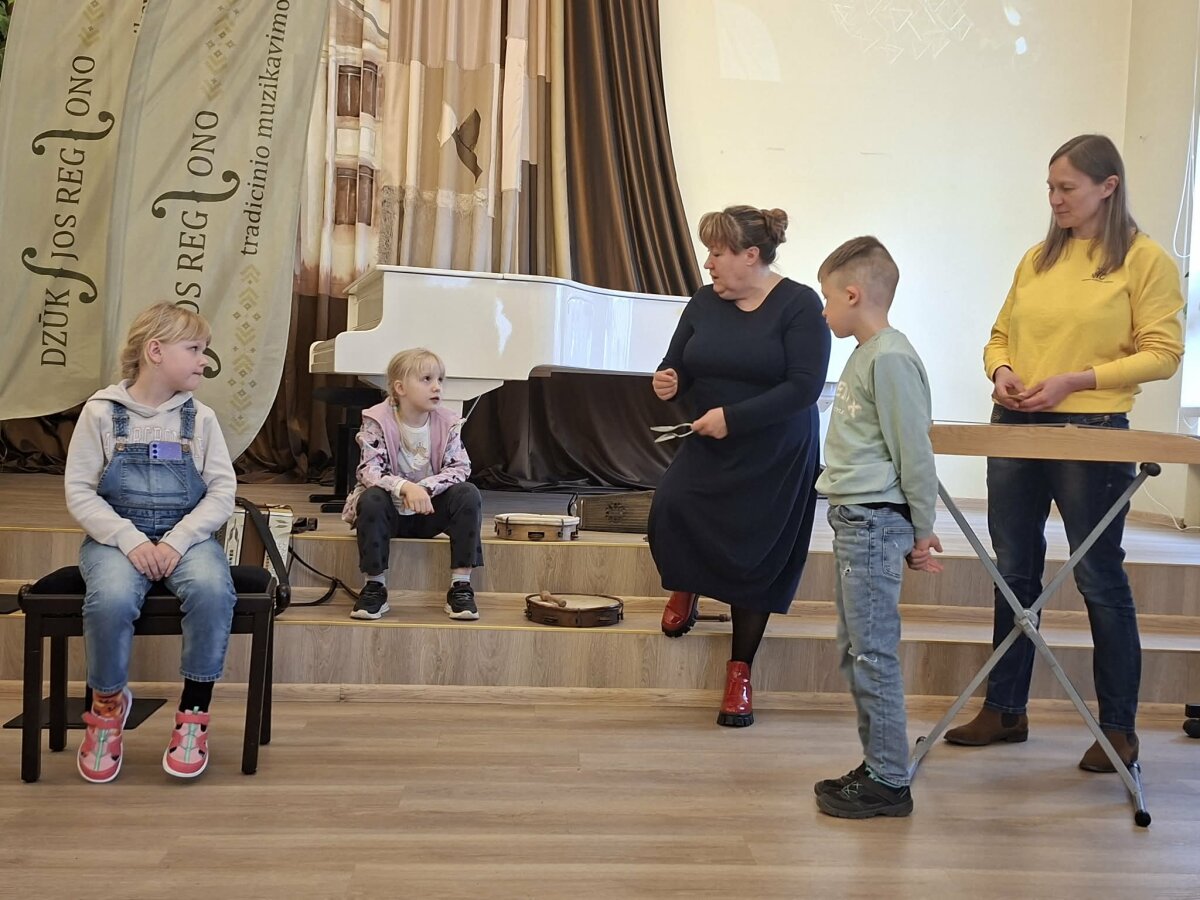 Sugaudė, suskambo Alytaus r. meno ir sporto mokyklos salėje dzūkų regiono tradiciniai instrumentai: cimbolai, smuikeliai, būgneliai-tamburinai, armonika, šaukštai, kanklės, nendrių lumzdeliai, skudučiai... 2026 m. balandžio 16 d. meno mokykloje lankėsi Varėnos kultūros centro folkloro ansamblio „Žeiria“ vadovė Vaida Naruševičiūtė ir Roma Ruočkienė - muzikė, ansamblio vadovė, renginių dalyvė Prienuose. Mokiniai buvo įgijo žinių apie tautinį tapatumą, papročius, tradicijas, etnokultūros svarbą, per aktyvią veiklą, žaidimus, dainas ir grojimą. Šis edukacinis renginys puikus bendradarbiavimo pavyzdys tarp Varėnos kultūros centro ir Alytaus r. meno ir sporto mokyklos, organizuojant projektą „Dzūkijos regiono tradicinio muzikavimo kursai“. Džiaugėmės, jog mokiniai drąsiai žengė į sceną ir „išbandė“ visus muzikos instrumentus.