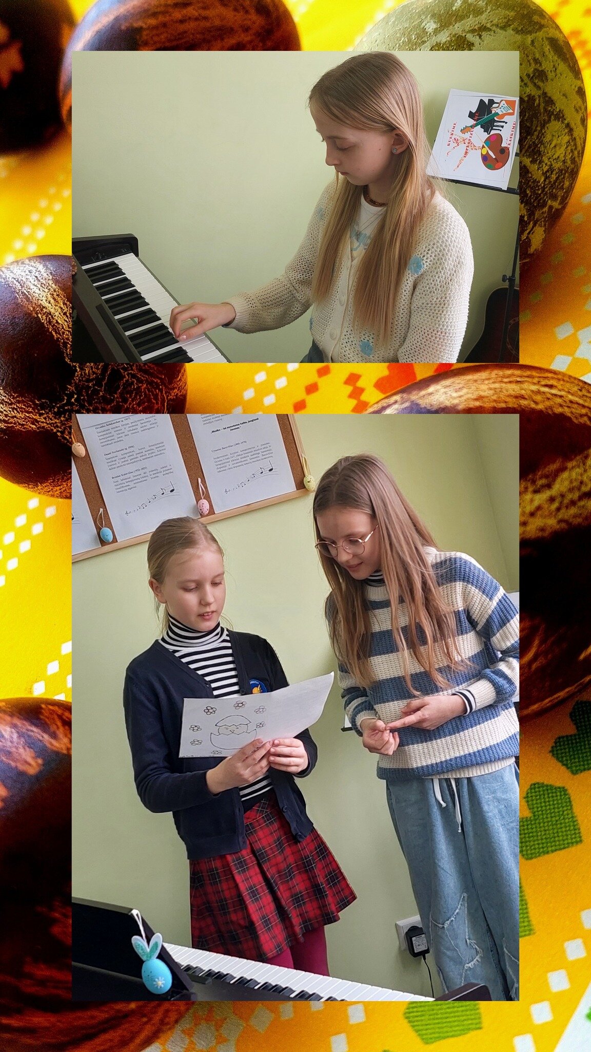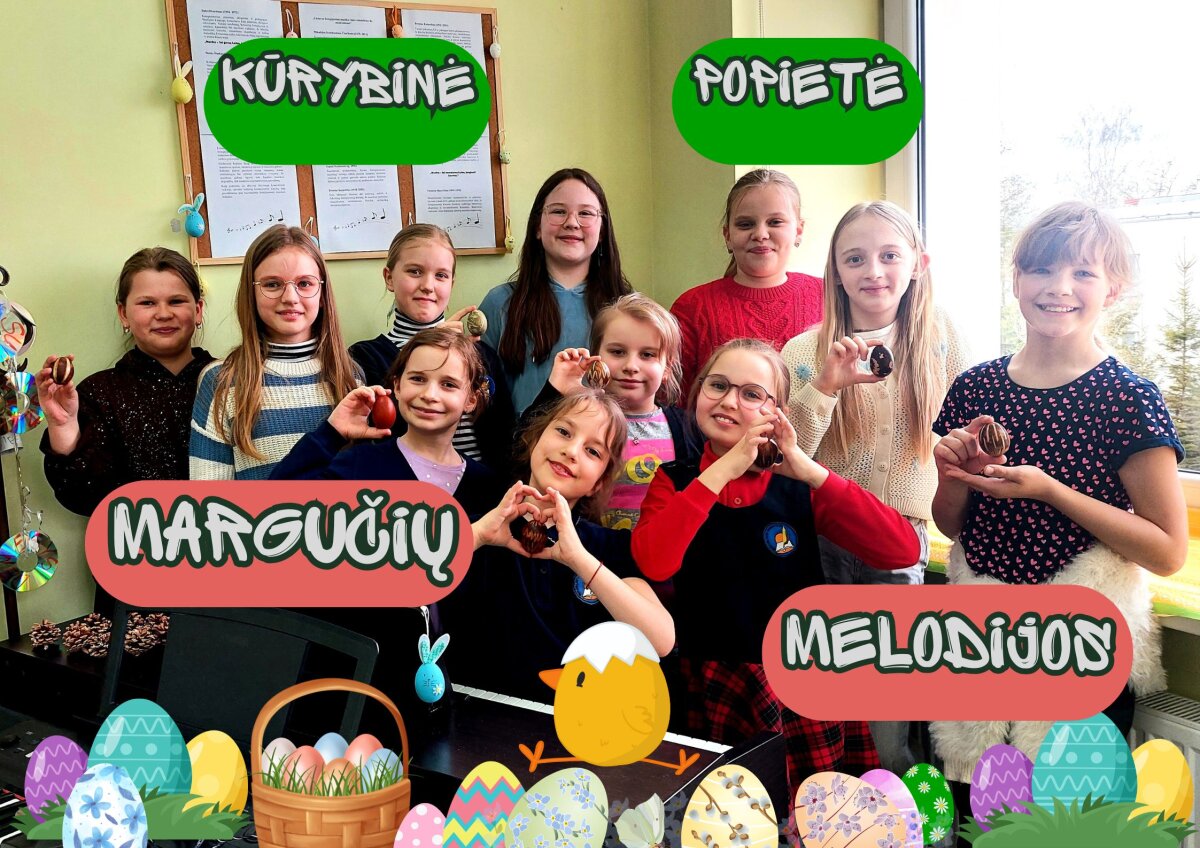 2026 m. balandžio 9 d. Alytaus r. meno ir sporto mokykloje (Miroslavo gimnazijoje) nuaidėjo spalvinga ir nuotaikinga kūrybinė-muzikinė popietė „Margučių melodijos“! Renginį organizavusi mokytoja metodininkė Laima Zalanskienė subūrė mokinius į smagias veiklas –diskusijas apie kalendorinių švenčių Velykų tradicijas, margučių dekoravimo būdus ir bendrą muzikavimą. Mokiniai ne tik pasakojo apie kiaušinių dažymą, marginimo raštus, ridenimo bei jų paieškos žaidimus, stipriausio margučio rinkimus, bet ir pasidalino gražiausių savo margučių nuotraukomis. O fortepijono klasės mokinės Martyna ir Viktorija Tamulionytės visiems papasakojo apie gilias Velykų tradicijas ir marginimo spalvų reikšmes. Išsiaiškinta, kad kiaušinis Velykose nėra tik maistas, kad, tai gilus simbolis, susijęs su gyvybe, viltimi ir atsinaujinimu. „Margučių melodijos“ tapo džiugia įžanga į artėjančias Vaikų Velykėles, tarsi priminimu, kad tradicijos gali skambėti šiuolaikiškai ir smagiai.